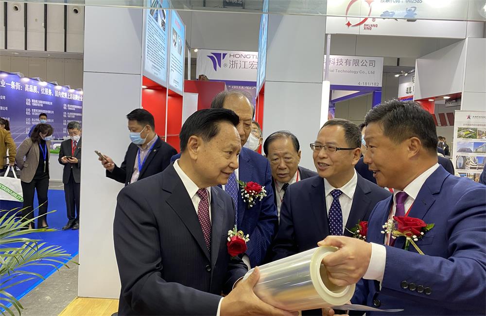 11.3日上午中國輕工業聯合會張崇和會長出席開幕式并組織參加會議的代表參觀了展會。在4號展館內張崇和會長親臨雙星新材展位,對我司的光學級薄膜、環保新能源材料等產品進行詳細了解,并關切地詢問了我司生產和企業發展情況。