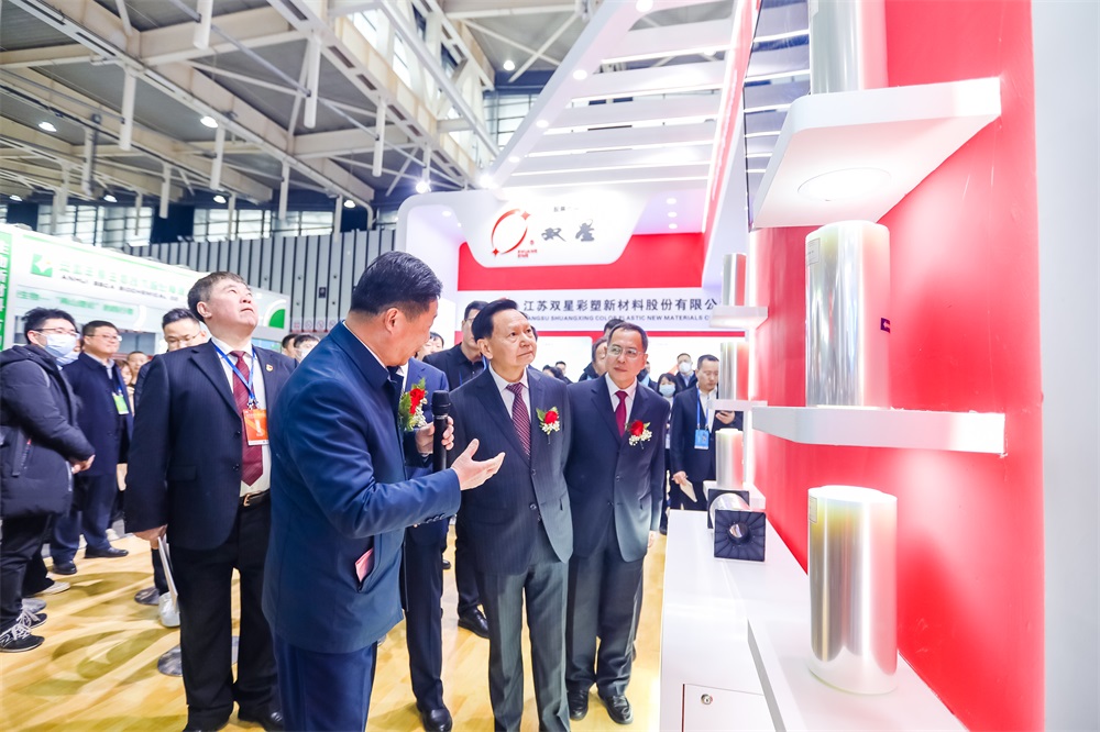 2.25日上午中國輕工業(yè)聯(lián)合會張崇和會長出席開幕式并宣布展會開幕。在6號展館內(nèi)張崇和會長親臨雙星新材展位,對我司的光學級薄膜、環(huán)保新能源材料、復合銅箔等多項最新技術(shù)產(chǎn)品進行詳細了解,并關(guān)切地詢問了我公司生產(chǎn)和企業(yè)發(fā)展情況。