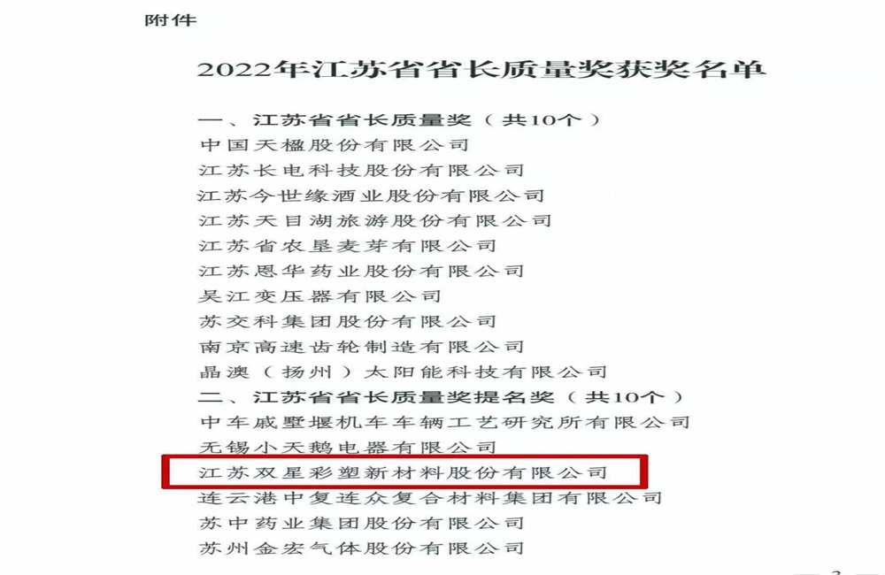 雙星彩塑上榜!榮獲省長質量獎提名獎